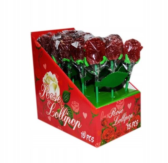 Wyjątkowe żelki na patyku, przypominające kształtem piękne róże, udekorowane delikatną posypką cukrową.
