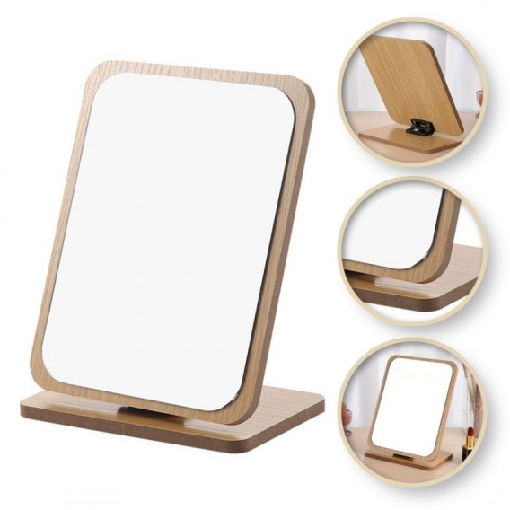 Lusterko kosmetyczne stojące drewniane prostokątne 21 x 16 cm L8BR