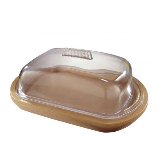 stylowa i minimalistyczna w swoim wyglądzie będzie pasowała do większości stylistyki zarówno w restauracjach, pubach, barach i domowych sferach. Osadzona na drewnianej, stabilnej podstawce wraz z plastikową, lekką pokrywką zachowa świeżość masła na dłużej i pięknie je wyeksponuje na stole.
