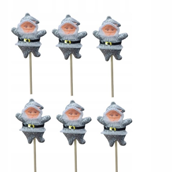 Wprowadź magię świąt do swojego domu dzięki zestawowi uroczych Mikołajów na piku druciku! Każdy z 6 ozdobnych Mikołajów to idealny dodatek do wszelkiego rodzaju świątecznych dekoracji - od stroików, przez wianki, aż po bukiety. Wykonane z dbałością o detale, ze srebrnym strojem i uroczymi brodami, te Mikołaje dodadzą Twoim kompozycjom świątecznego charakteru. Długość całkowita ozdoby, włącznie z patykiem, wynosi 18 cm, co pozwala na wygodne i kreatywne umieszczanie ich w różnych aranżacjach.