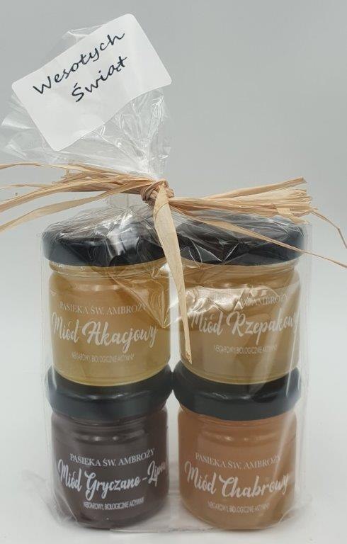 Miód mini w słoiczku 4szt. z karteczką ,,Wesołych Świąt''