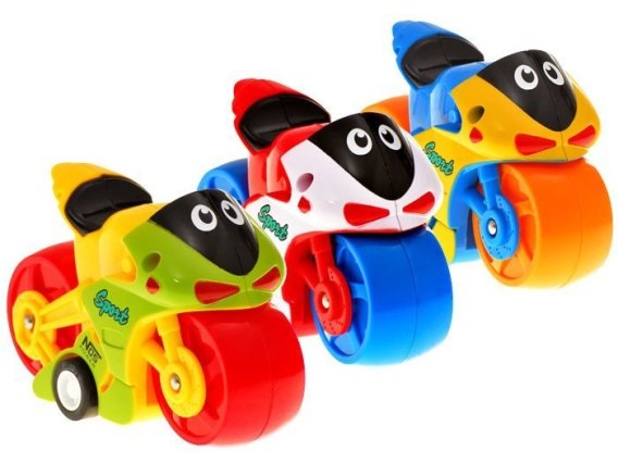 Nowy, super wyścigowy, sportowy motorek. Urocza zabawka, zachwyci każdego małego fana sportowych pojazdów. Jest to zabawka przeznaczona dla najmłodszych przedstawia wesoły motor, który jeździ za pomocą naciągu zamontowanego w kołach. Motorek napędzany jest siłą rączek małego kierowcy.