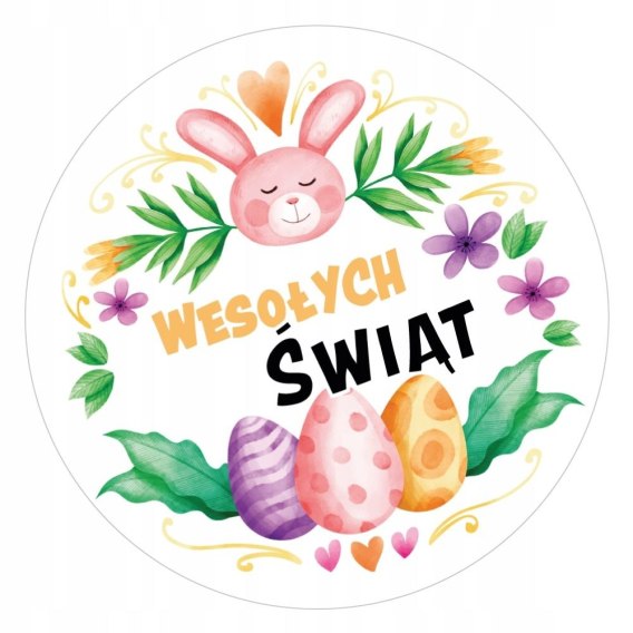 Naklejki Wielkanocne Wesołych Świąt średnica 55 mm - 12 szt