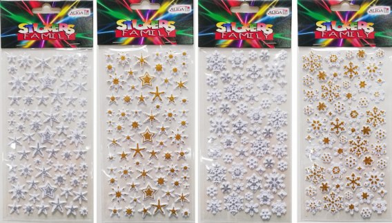 Naklejki gwiazdki i śnieżynki przestrzenne złote i srebrne | NKX-4798