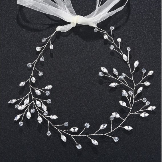 Delikatna opaska wykonana ręcznie z kompozycją kryształkowo - perłowąProsta, ale bardzo efektowna ozdoba do włosów.Rozmiar uniwersalny
