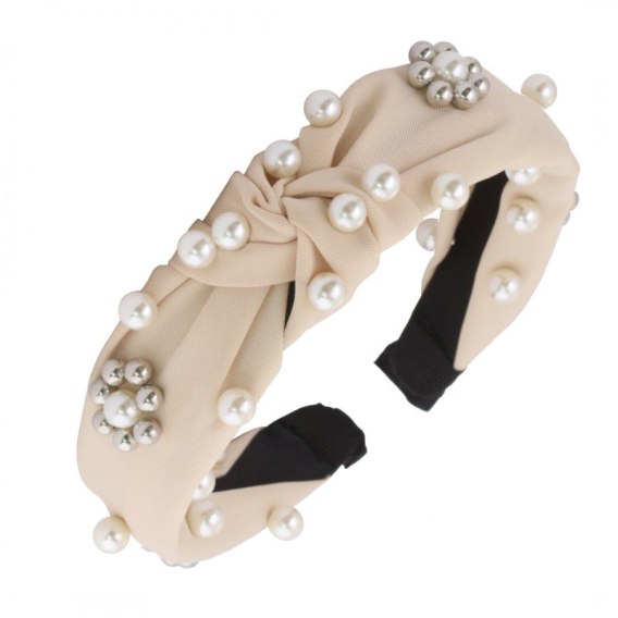 Opaska turban z materiału Perełki Krem O226K