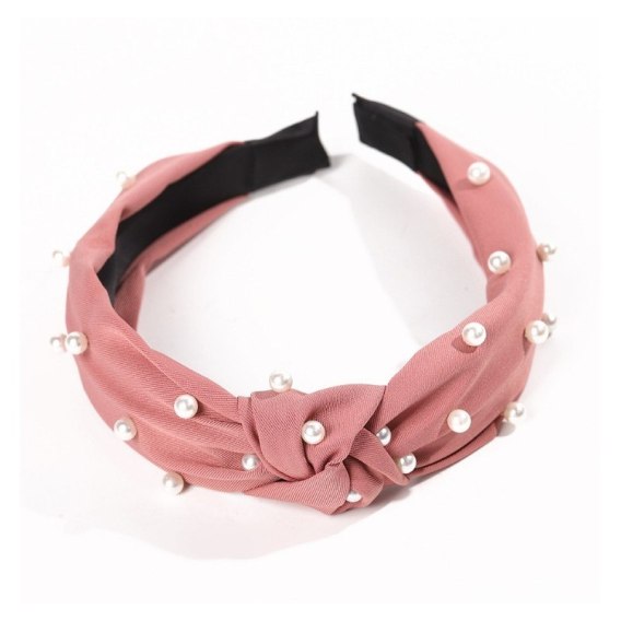 Opaska turban z materiału gruba ciemny róż perełki O227CR