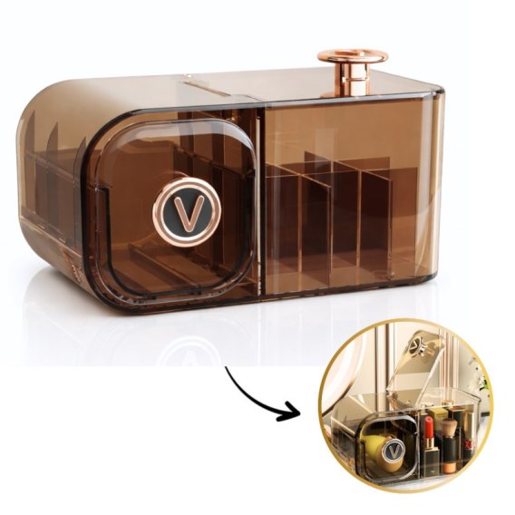 Organizer na kosmetyki szafeczka z przegródkami i szufladką, brązowy CB36