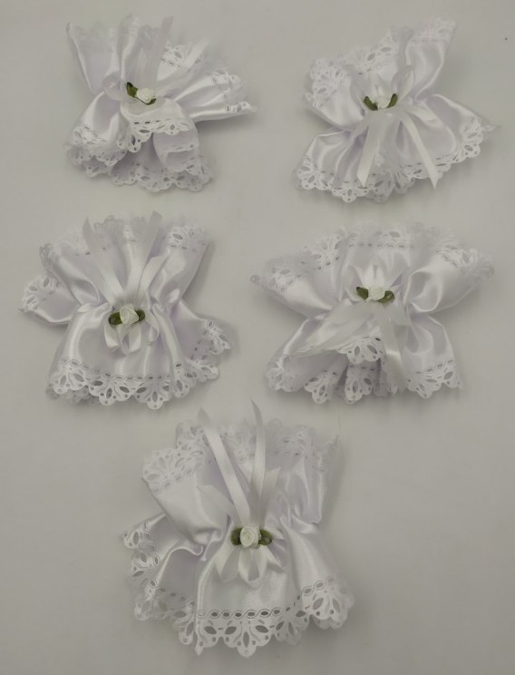 Osłonka na świecę - rozetka 5szt. biała atłas | 8522