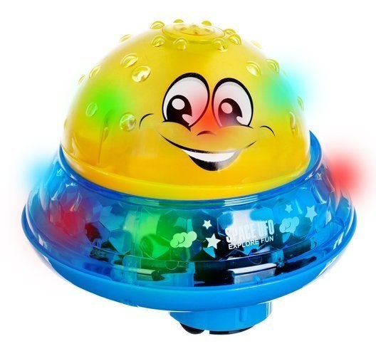 - SPECYFIKACJA - kolor: wielokolorowa; materiał: ABS / tworzywo sztuczne; zasilanie: baterie 3xAAA (brak w zestawie); zastosowanie: lampka nocna, zabawka wodna, wydaje dźwięki, jeździ; wymiary (szer/wys): 13/10cm; waga: 0.75kg; waga w opakowaniu: 0.85kg.