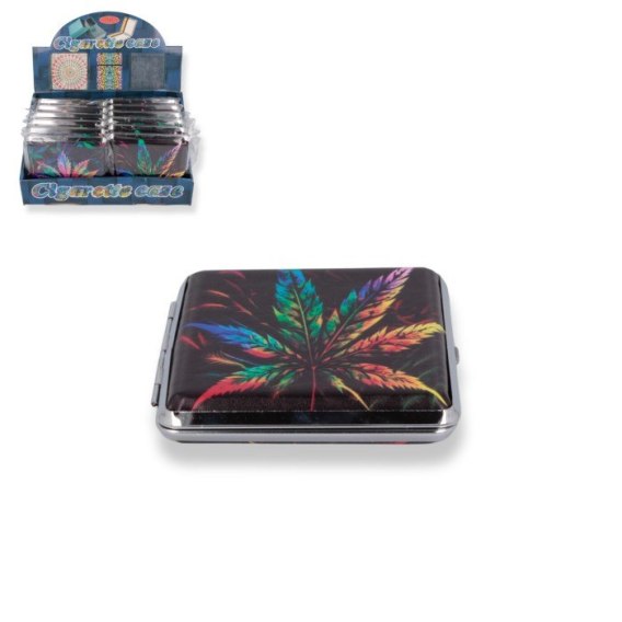 Papierośnica metalowa wzór eko-skóra z aplikacjami wym.9,5 x 9,5cm