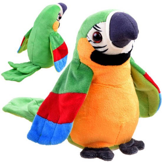 Kolorowa, pluszowa Papuga pleciuga powtórzy wszystko co jej powiesz! Uroczy, kolorowy ptak ma funkcje odtwarzania tego, co się do niej mówi w komiczny sposób.