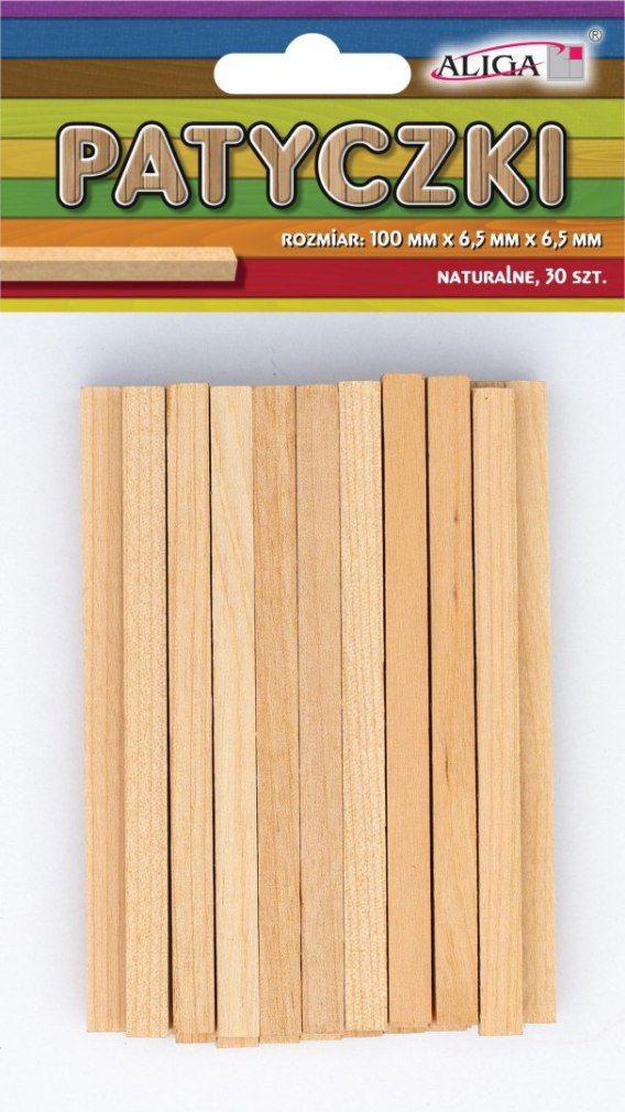 Patyczki 30szt. płaskie NATURALNE 100x6,5x6,5mm | PL-0646
