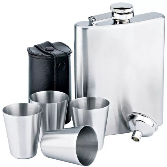 Piersiówka stalowa metalowa nierdzewna 210ml + kieliszki XJ4263