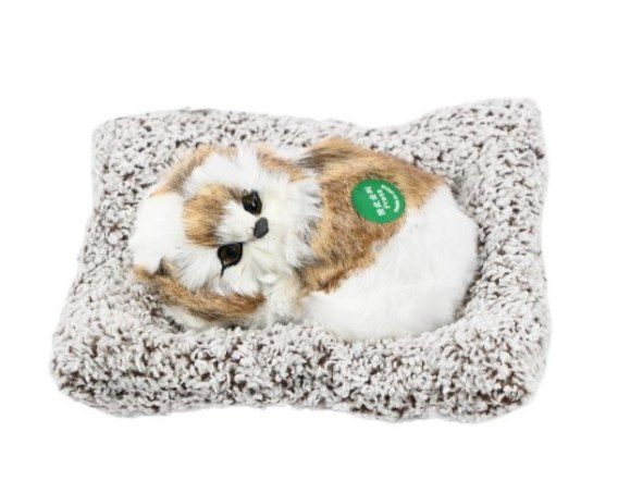 Realistycznie wyglądający piesek, wykonany z dbałością o detale, zachwyci każdego miłośnika zwierząt. Dzięki miękkiemu futerku pokrywającemu ciało pupila, wygląda on niezwykle autentycznie, jakby właśnie położył się w swoim wygodnym łóżku.