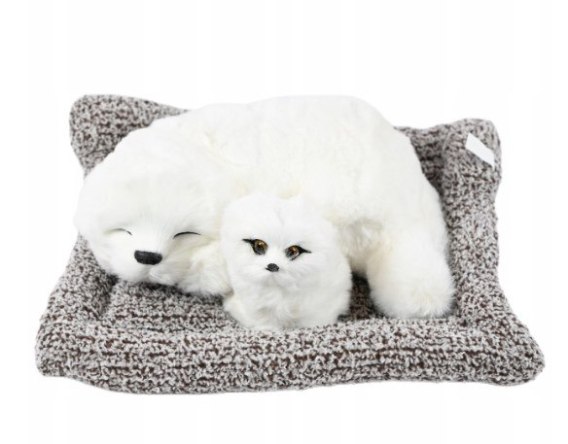 Realistycznie wyglądający piesek, wykonany z dbałością o detale, zachwyci każdego miłośnika zwierząt. Dzięki miękkiemu futerku pokrywającemu ciało pupila, wygląda on niezwykle autentycznie, jakby właśnie położył się w swoim wygodnym łóżku.