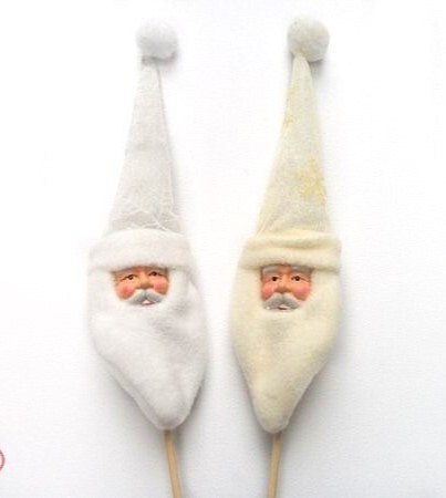 Dekoracja na piku - głowa Mikołaja, którą można przyozdobić choinkę, stroik lub inną świąteczną kompozycję.
