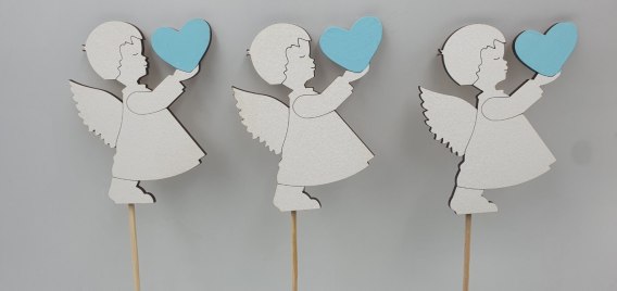 Pik 3szt. KOMUNIA CHRZEST ŚW. ANIOŁEK Z SERCEM CHŁOPIEC 9cm