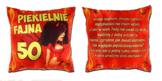 Poduszka zapakowana w folię, idealnie nadaje się jako prezent główny jak i upominek (dodatek) do prezentu.