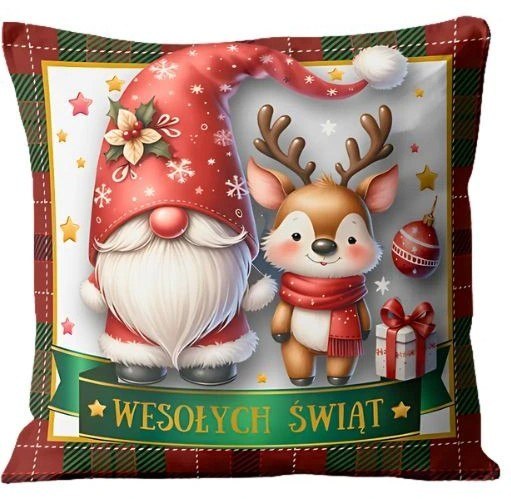 Poduszka została wykonana z miękkiego, odpornego na zużycie poliestru, który zachowuje kolor i strukturę nawet po wielu praniach. Wypełnienie z trwałej owaty gwarantuje sprężystość i wygodę użytkowania. Dzięki temu produkt łączy estetykę z funkcjonalnością - doskonale sprawdza się jako element świątecznego wystroju oraz przytulny dodatek podczas zimowych wieczorów przy choince.