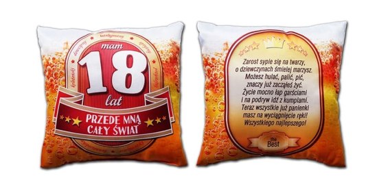 Poduszka urodzinowa - Mam 18 lat przede mną cały świat S116