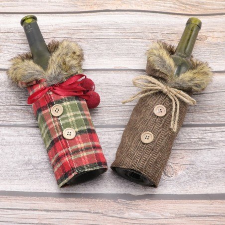 Pokrowiec na butelkę, wino Boże Narodzenie czerwono - zielona krata KSN11
