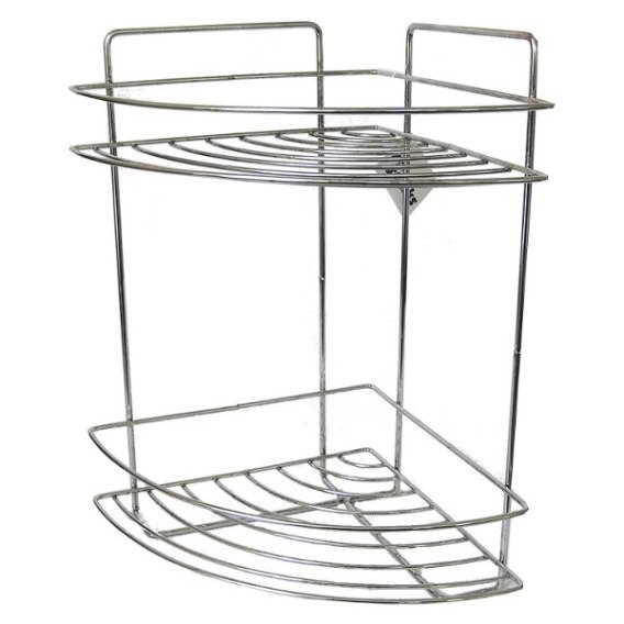 Półka łazienkowa-narożna wykonana z drutu chromowanego.