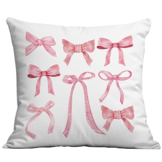 Poszewka na poduszkę 45 x 45 cm biała, KOKARDKI różowe POD230