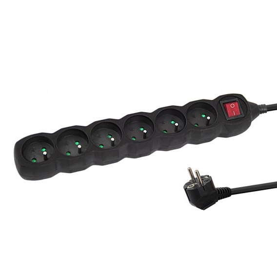 Przedłużacz listwa zasilająca 6 gniazd z przewodem 1.5m z włącznikiem czarna ELK217K