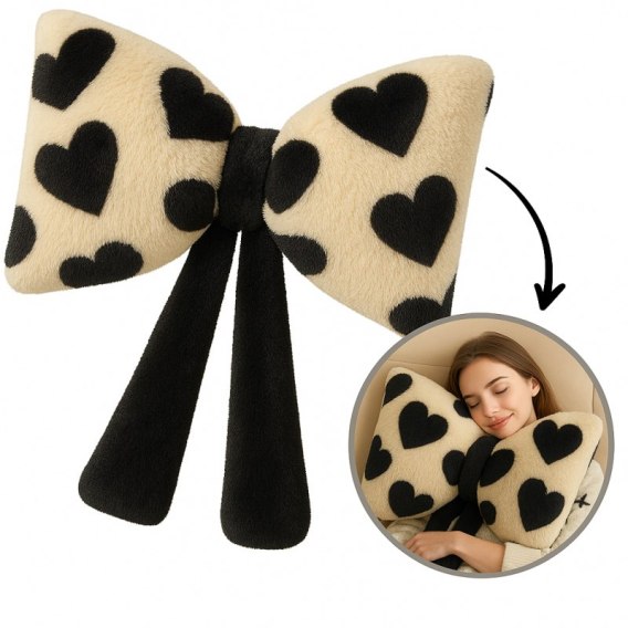 Puchata poduszka dekoracyjna, duża kokarda w serca, 40 x 50 cm PDS24