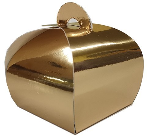 Pudełeczko okolicznościowe o podstawie 6 x 6 cm i wysokości po złożeniu około 6 cm. Idealnie do przyzdobienia stołu podczas uroczystości, pomieści cukierki, liściki lub co tylko sobie wymyślisz. Złote święcące wykończenie z jednej strony a białe w środku.