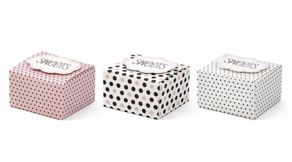 Pudełeczka z chmurką Sweets z napisem Sweets do samodzielnego przyklejenia, mix wzorów, wymiary 6x5,5x4cm.