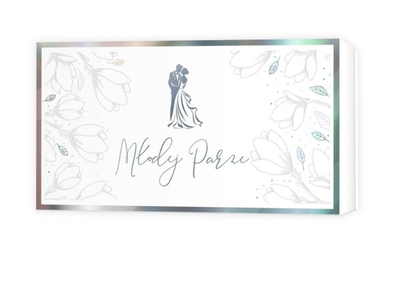 Pudełko z okazji Ślubu idealnie sprawdzi się do wręczenia małego upominku lub banknotów. Wykonane z grubej tektury i foliowanego papieru, tak by zachować trwałość. Ozdobione złoceniem i tłoczeniem, przy użyciu eleganckiego wzornictwa. W środku zawiera kartkę z życzeniami i miejscem na wpis.