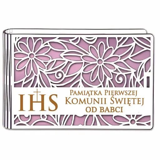 Pudełko na pieniądze banknotówka KOMUNIA - od BABCI - Ażur 3302A-KOM2R-B