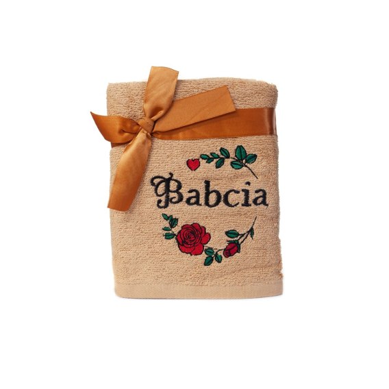 Ręcznik bawełniany "BABCIA" z różą . 50 x 90 cm. kolor miodowy