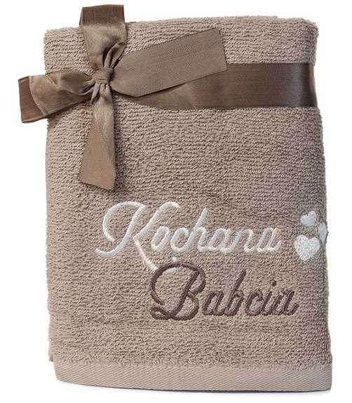 Ręcznik bawełniany " KOCHANA BABCIA ". 50 x 90 cm. kolor jasno-brązowy