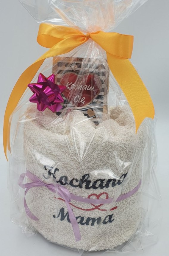 Ręcznik biały z haftem " Kochana Mama " + słodycze