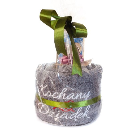 Ręcznik szary z haftem "Kochany Dziadek" + czekolada