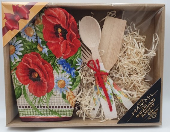 Rękawica + sztućce drewniane kwiaty - dla Wspaniałej Kobiety 36 x 28 cm.