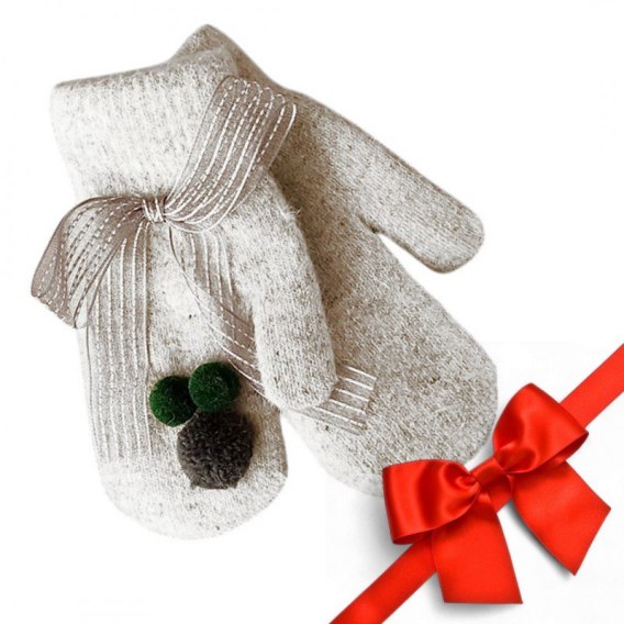 Rękawiczki posiadają delikatne zdobienia z pomponów i kokardy