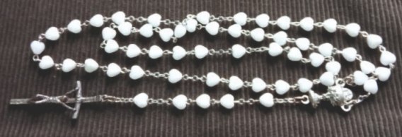 Różaniec metalowy serce białe 10 szt.