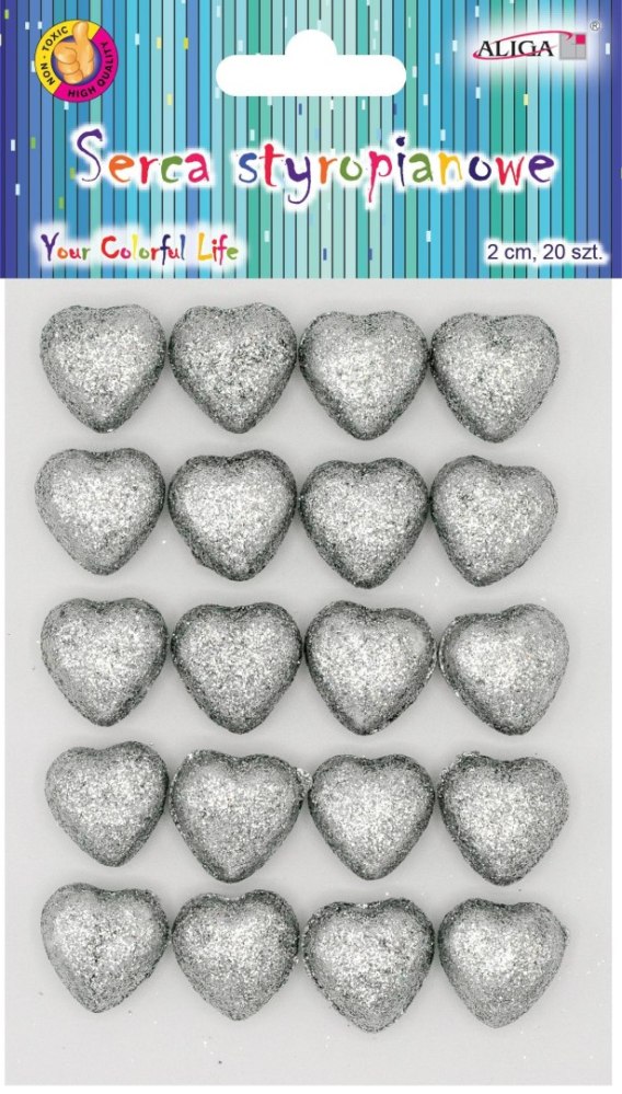 Serca styropianowe brokatowe srebrne 2cm 20szt. | BBS-04