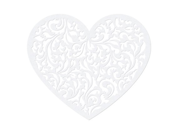 Dekoracje papierowe Serce, wycinane z białego, grubego papieru, wymiary 12x10 centymetrów.