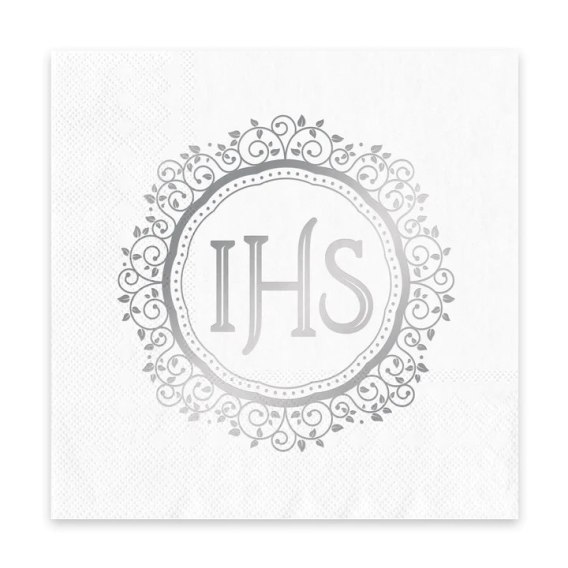 Serwetki komunijne IHS biało-srebrne 10szt. 132135