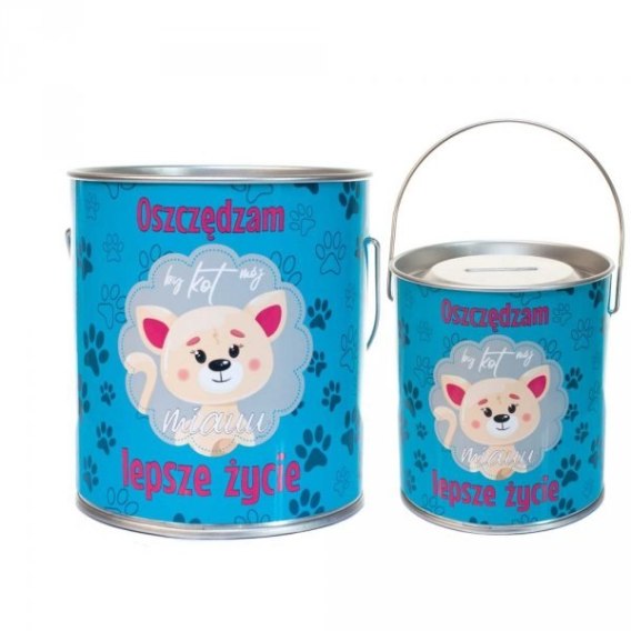 Skarbonka PCV z wciskanym wieczkiem i uchwytem "Oszczędzam by mój kot..."