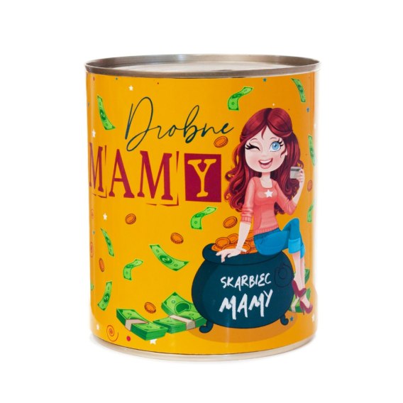 Skarbonka metalowa urodzinowa z napisem "Drobne mamy"
