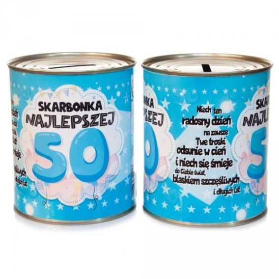 Skarbonka metalowa urodzinowa z napisem "Skarbonka Najlepszej 50"