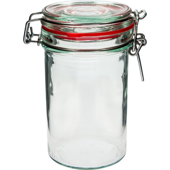 Szklany słoik o pojemności 500 ml. Pokrywa słoika zaopatrzona jest w metalowy klips dociskający uszczelkę. Dzięki temu żywność przechowywana w słoiku zachowuje smak i świeżość. Idealny jako pojemnik na herbatę, kawę, cukier czy słodycze. Smukły kształt czyni go eleganckim dodatkiem, niezbędnym w każdej kuchni.