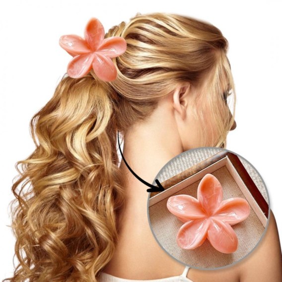 Spinka do włosów klamra XL kwiat, marmurek pomarańcz 7,5 x 8cm SP400