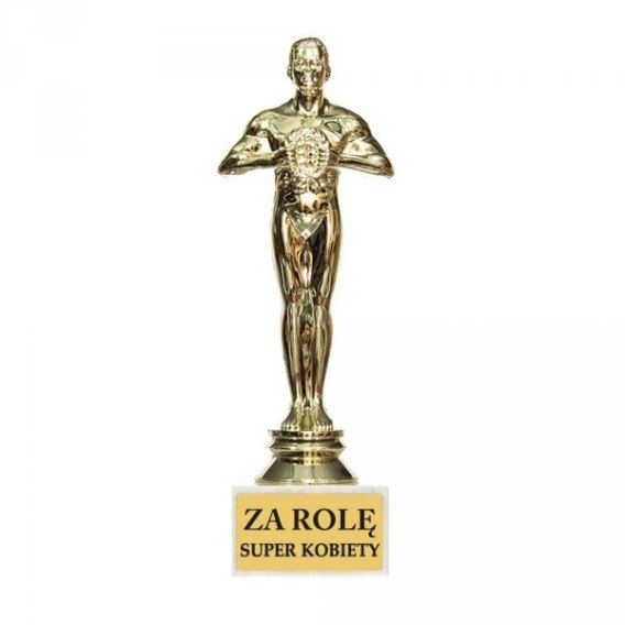 Statuetka wykonana z tworzywa sztucznego w kolorze złotym w ozdobnym prezentowym opakowaniu.